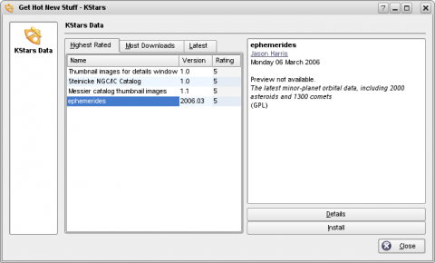 KStars is a graphical desktop planetarium for KDE. It depicts an accurate simulation of the night sky, including stars, constellations, star clusters, nebulae, galaxies, all planets, the Sun, the Moon, comets and asteroids. You can see the sky as it appears from any location on Earth, on any date. The display can be panned and zoomed with the mouse, and you can easily identify objects, and track their motion across the sky.